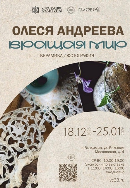 18 декабря, в «Галерея 4-6» состоялось необычное и очень душевное открытие персональной выставки художницы и керамиста Олеси Андреевой «Вращая мир» в культурно-выставочном пространстве «Галерея 4-6» (г. Влалдимир, ул. Большая Московская, д.4)