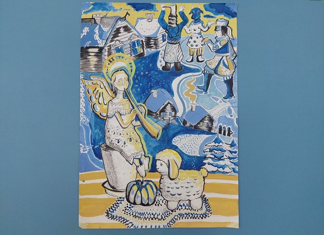 2. Кратова Виктория (12 лет), номинация «Декоративная графика», работа «Святки», лауреат 1 степени (преподаватель Слободянюк Елена Алексеевна).